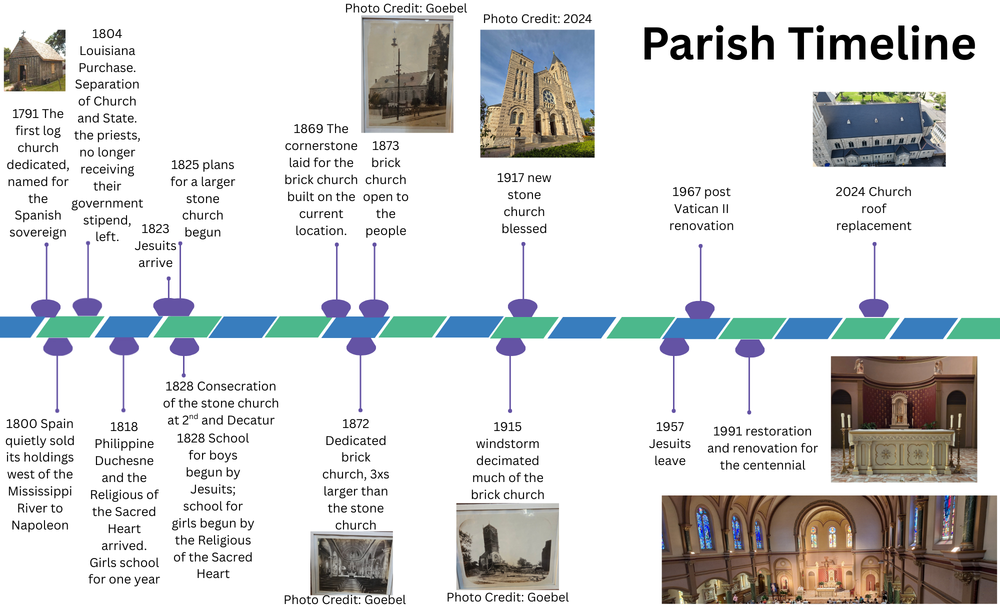 St. Charles, an area fertile in the quality of its land, also has produced over two centuries rich in faith. On the banks of the Missouri in 1769, Louis Blanchette and his band of French Canadians built a settlement which soon included a rough log cabin used for Mass and church gatherings by visiting order and secular priests.