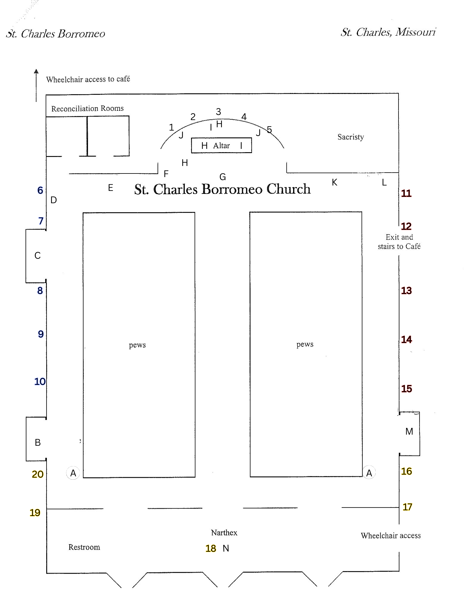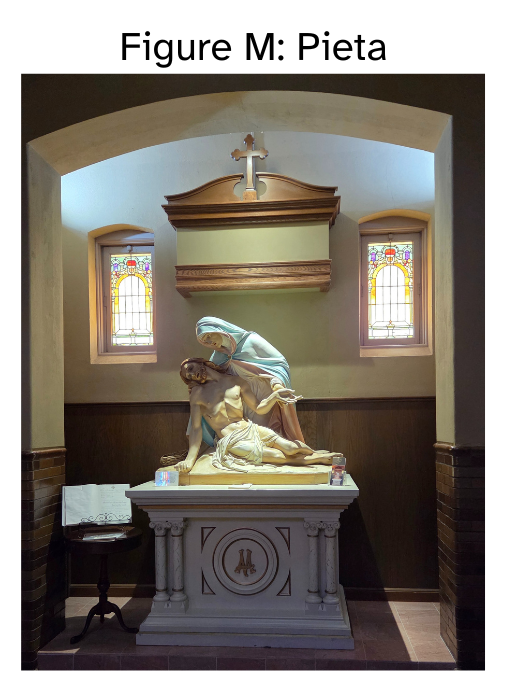 The Pieta (figure M) was added to the sanctuary following the renovation.