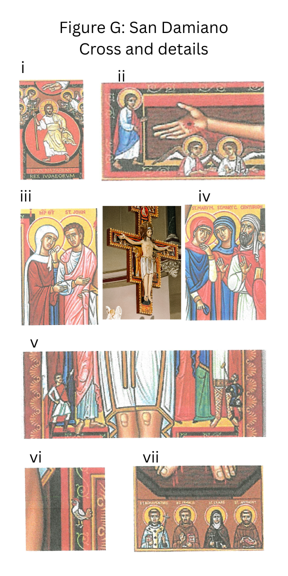 (image vii) At the very bottom of the Cross the original artist depicted several saints. Their visages in the original cross were damaged over the centuries and are now unrecognizable. Our replica seems to have sustained some damage there as well.