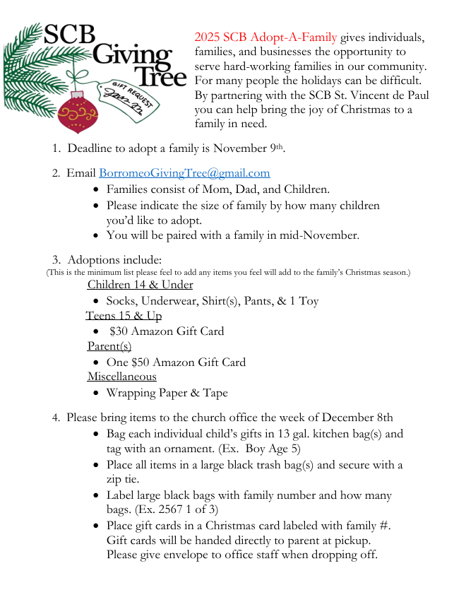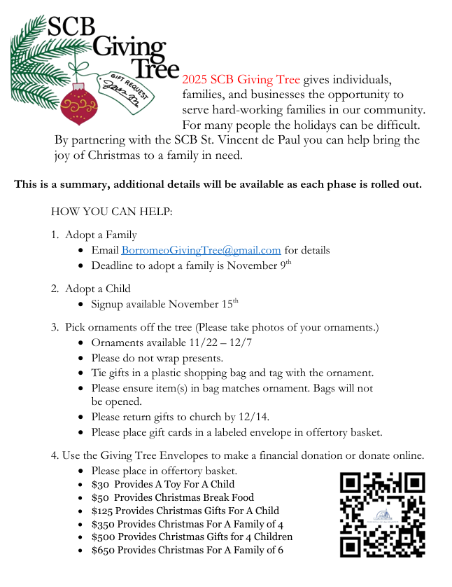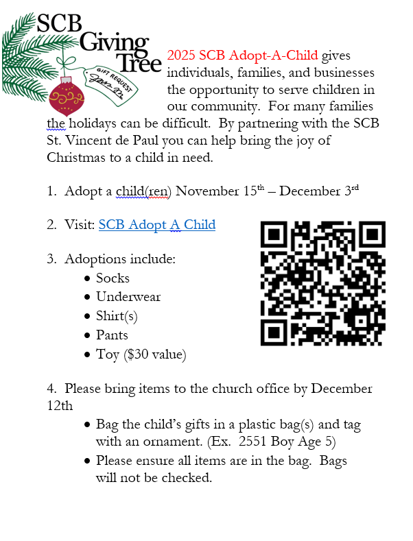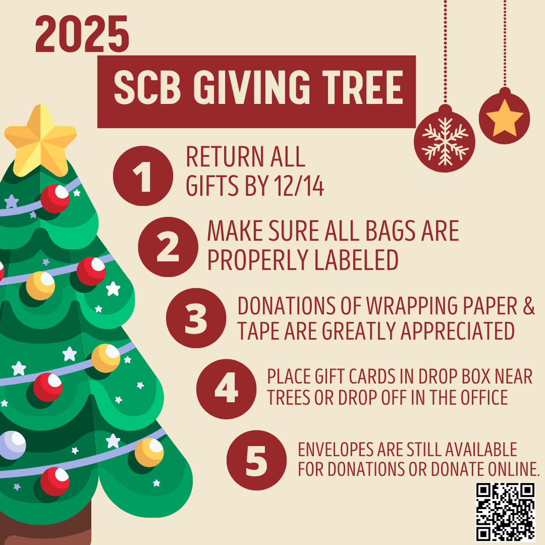 SCB Giving Tree - Adopt a Family, Adopt a Child, Ornaments on the Tree, Donate online - Give now